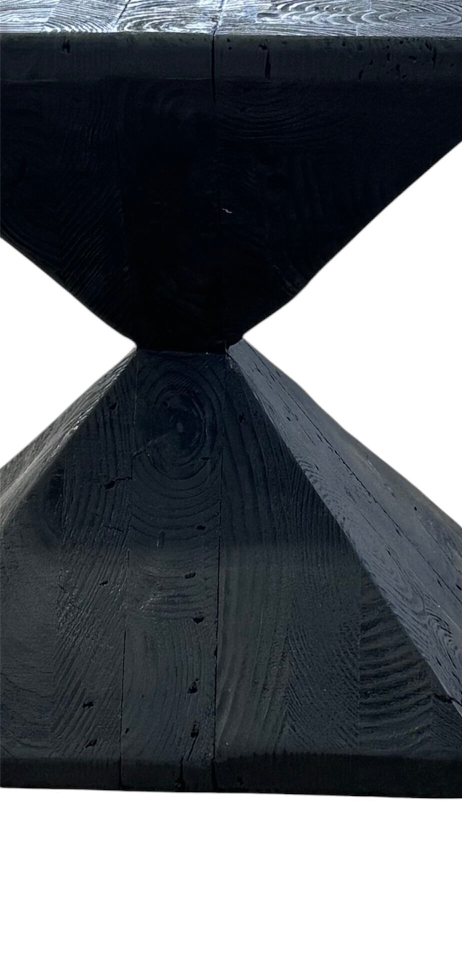 複雑な木の組み合わせで不思議なテクスチャーのサイドテーブルです。