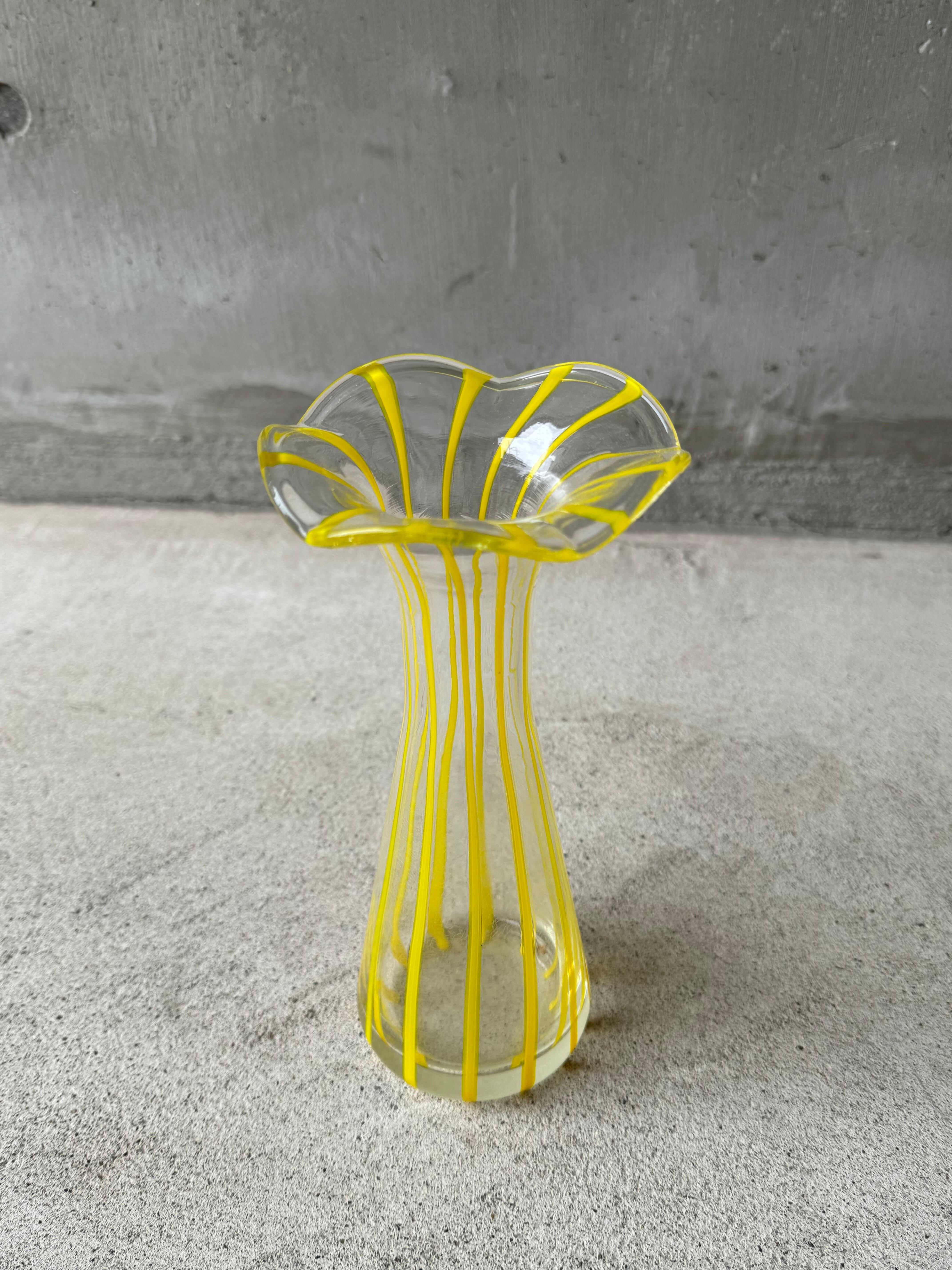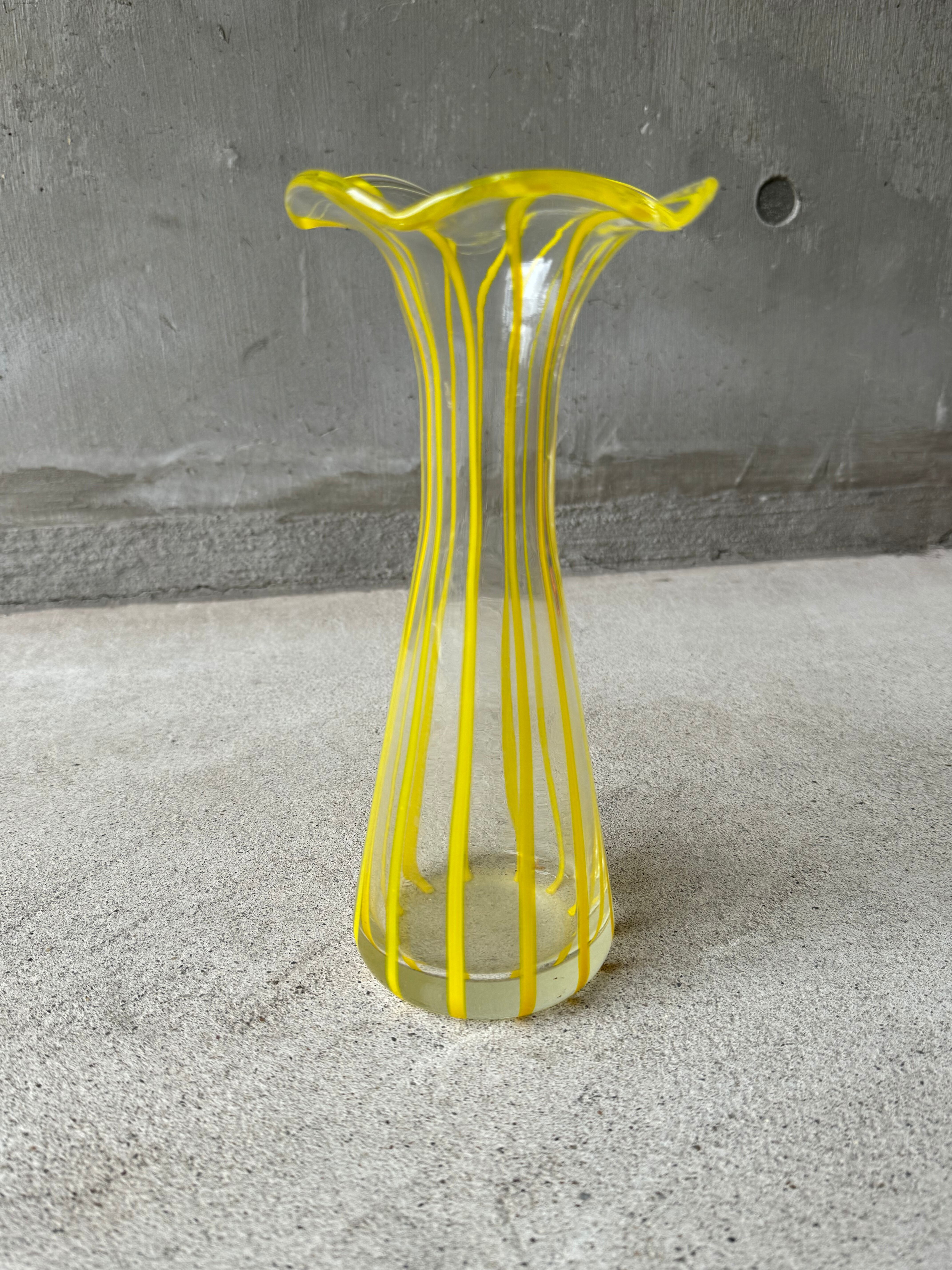Vintage Yellow Stripe glass flower vase