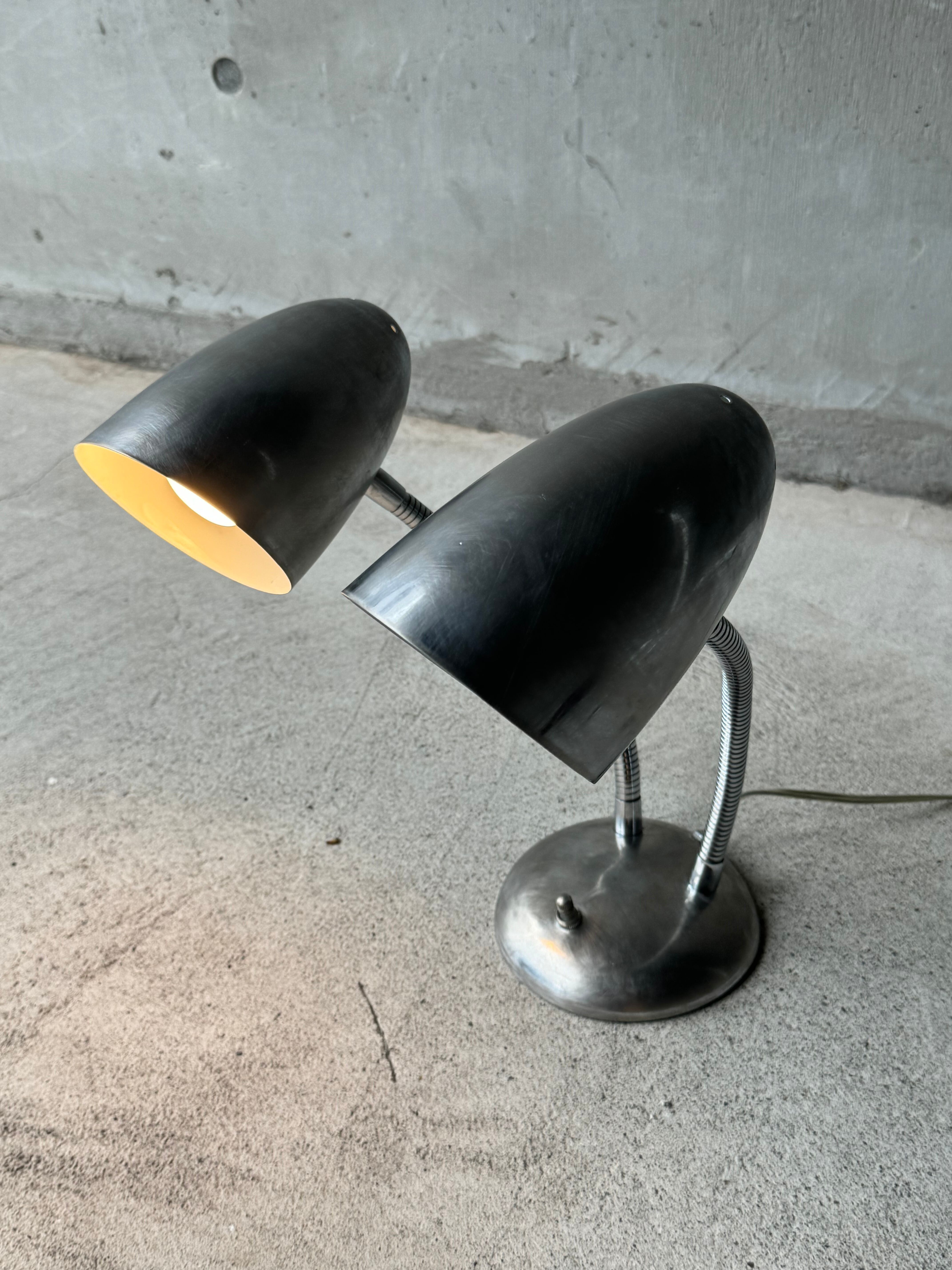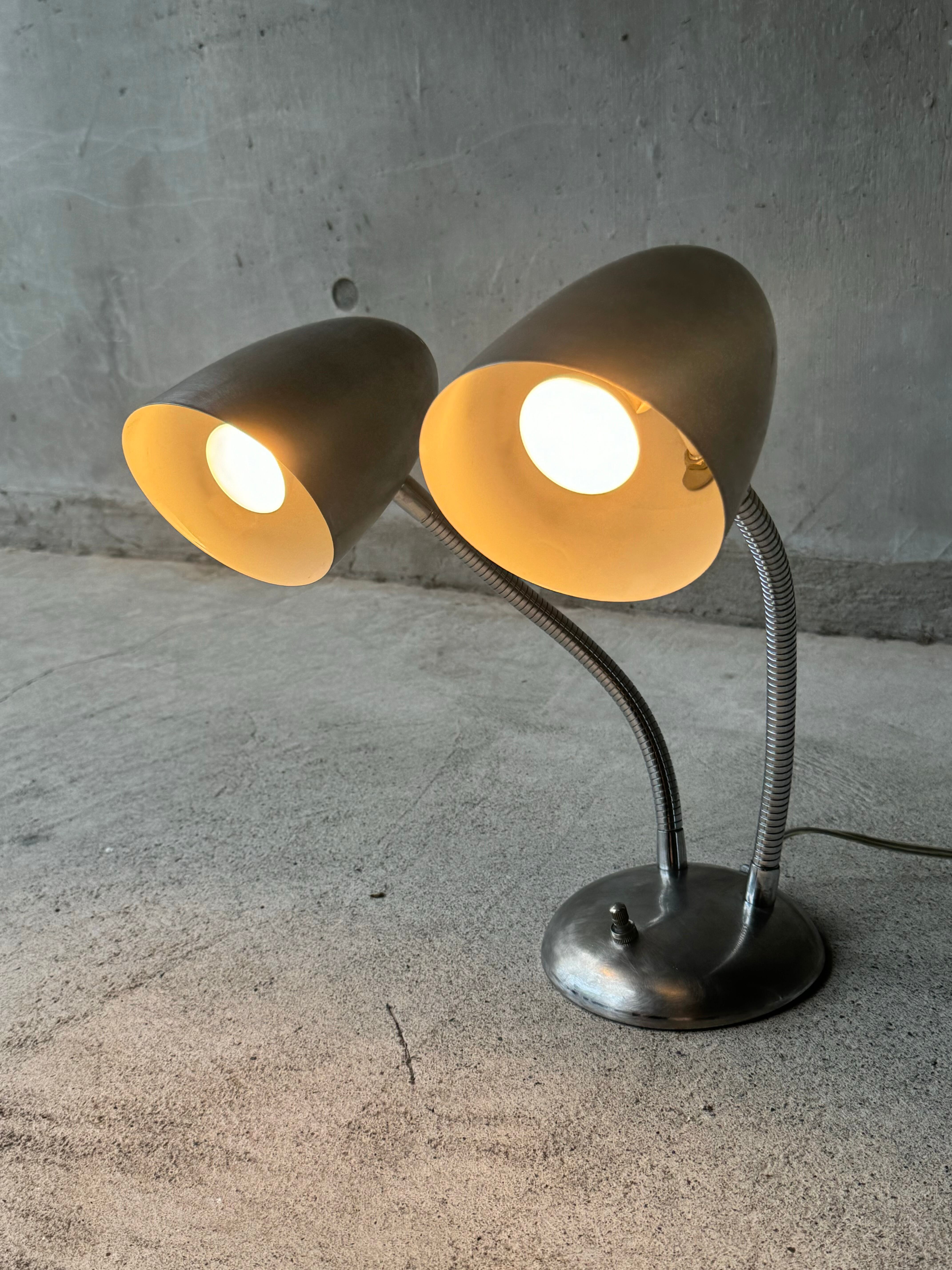 スペースエイジデザインな2灯グースネックランプです。