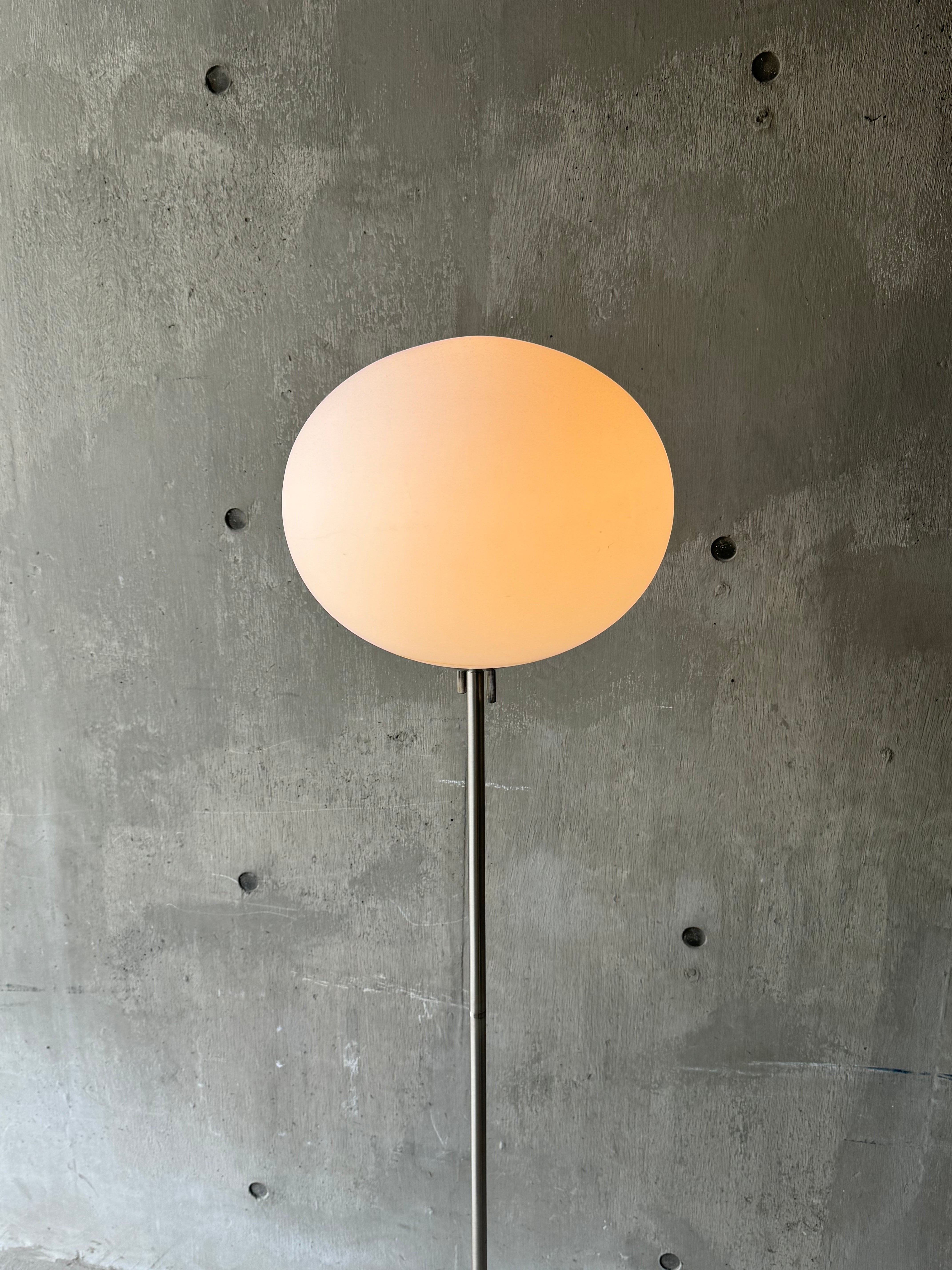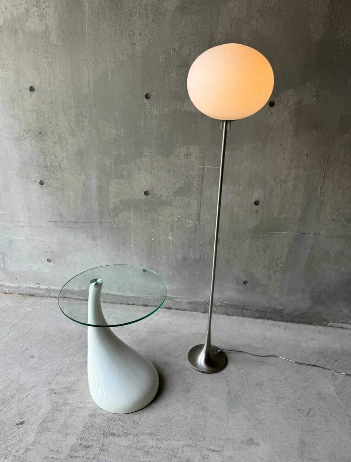 分かりづらいですが、ただの丸ではなく楕円なところとベースの部分のスペーシーな感じが良いです。磨りガラスで出来ているためガラス特有の光の広がりを感じます。