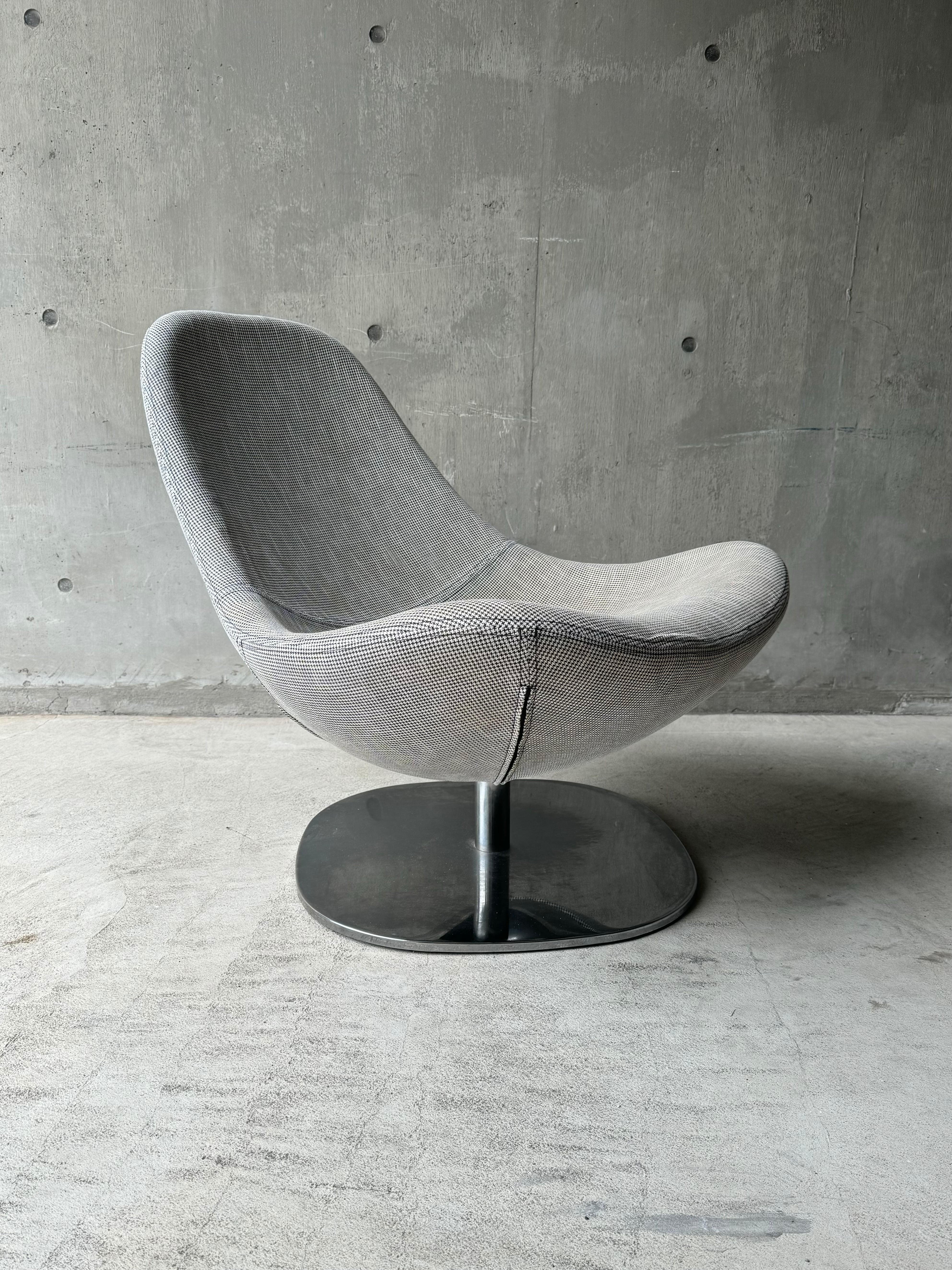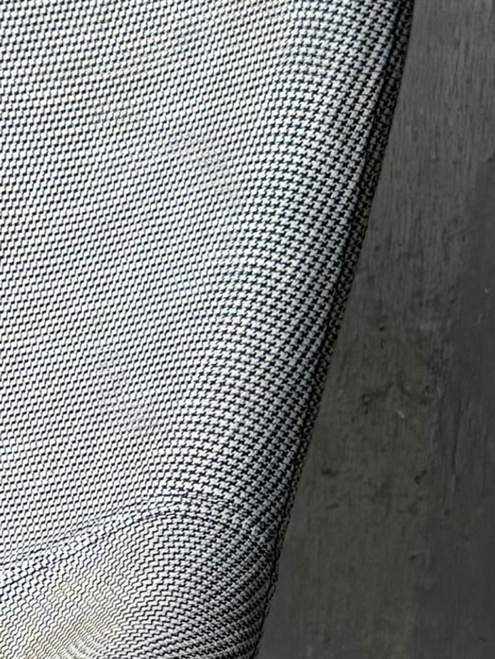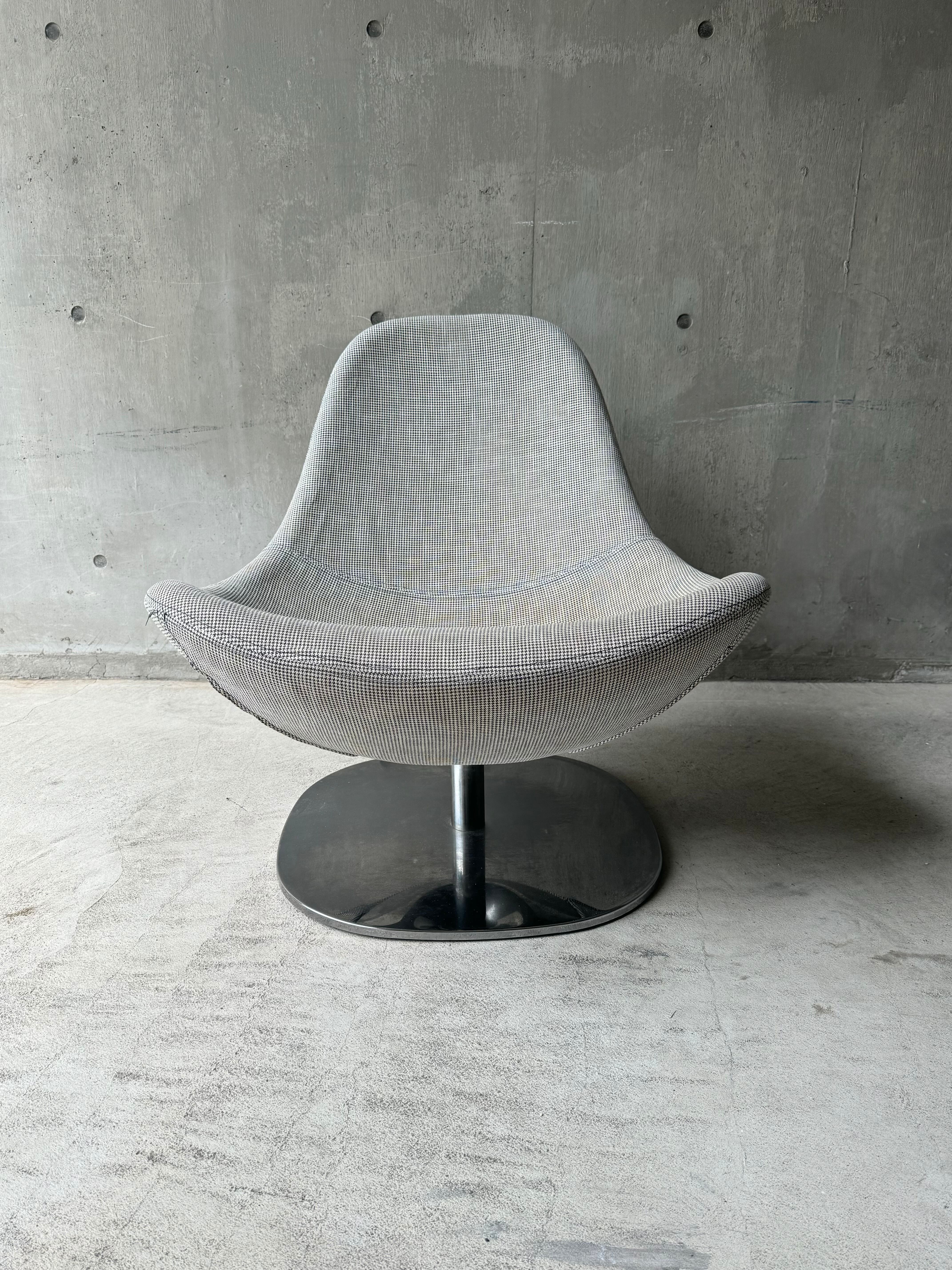 すでに廃盤となっており、日本では流通が少ないアイテムかと思います。分かりづらいですが千鳥柄のファブリックです。包み込んでくれるようなコロンとしたデザインが良いです。