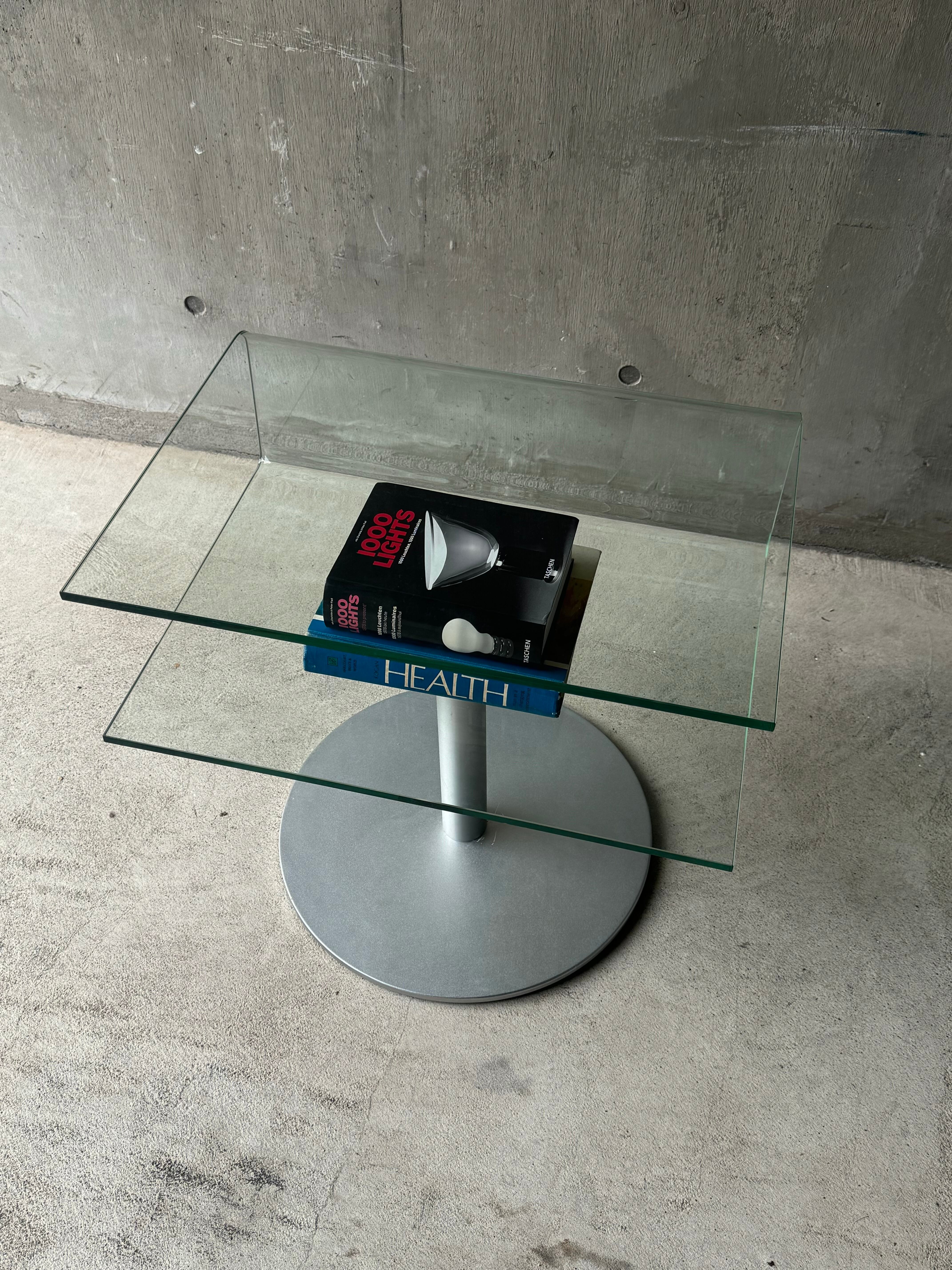 スペーシーな脚に、現在では珍しくなった曲げガラスなのがとても良いです。