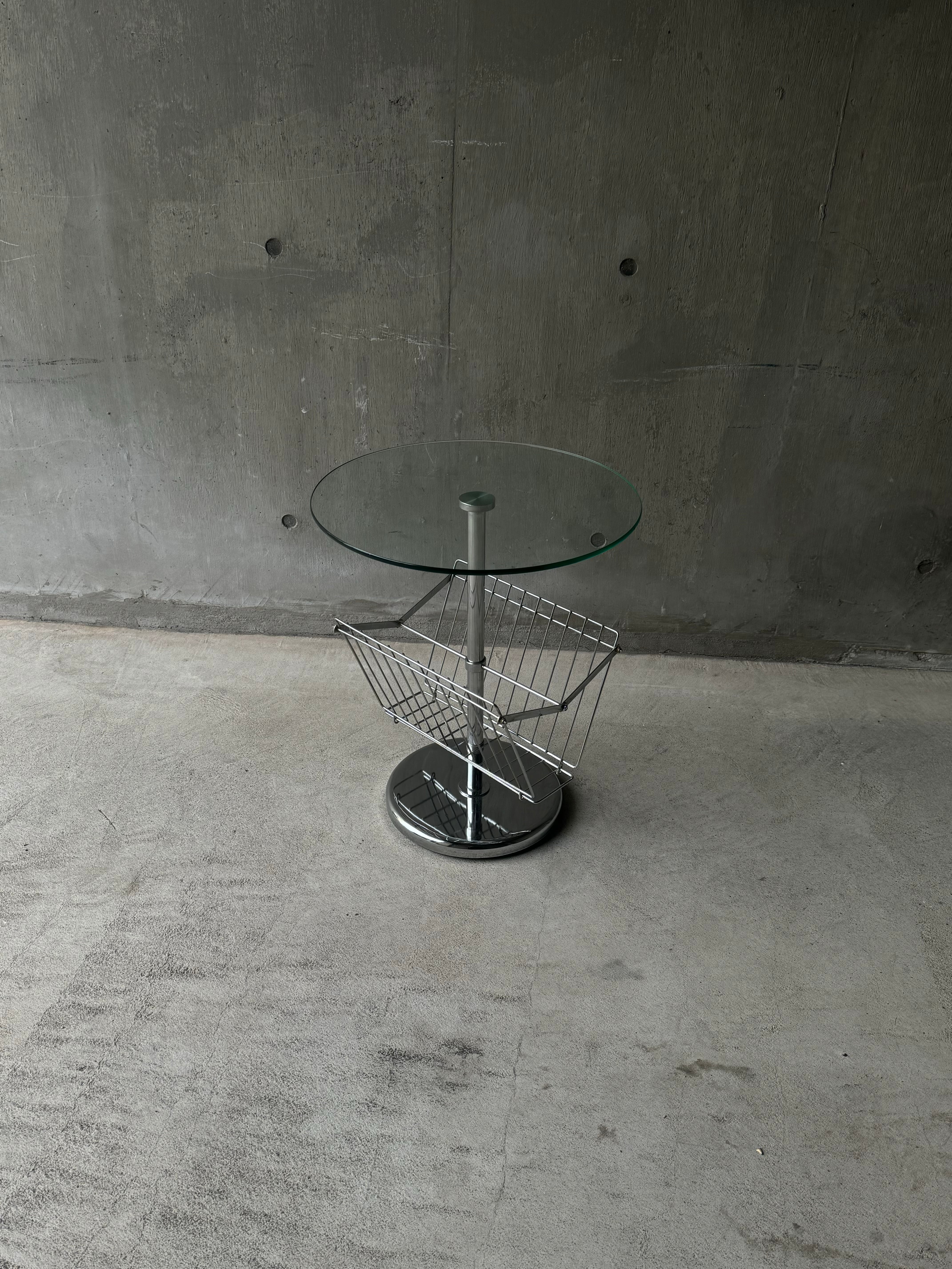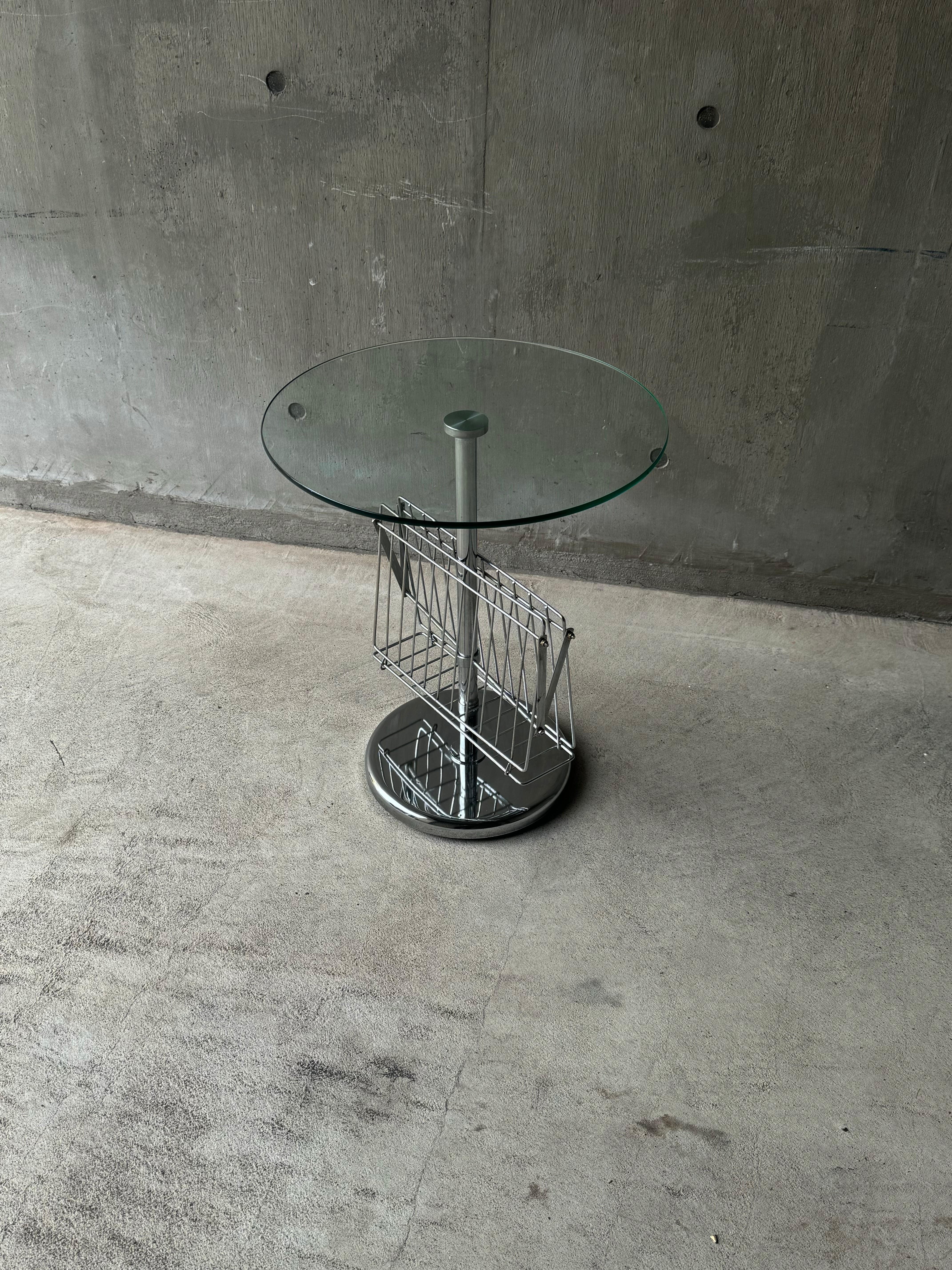 Glass Side Table with Magazine Rack
