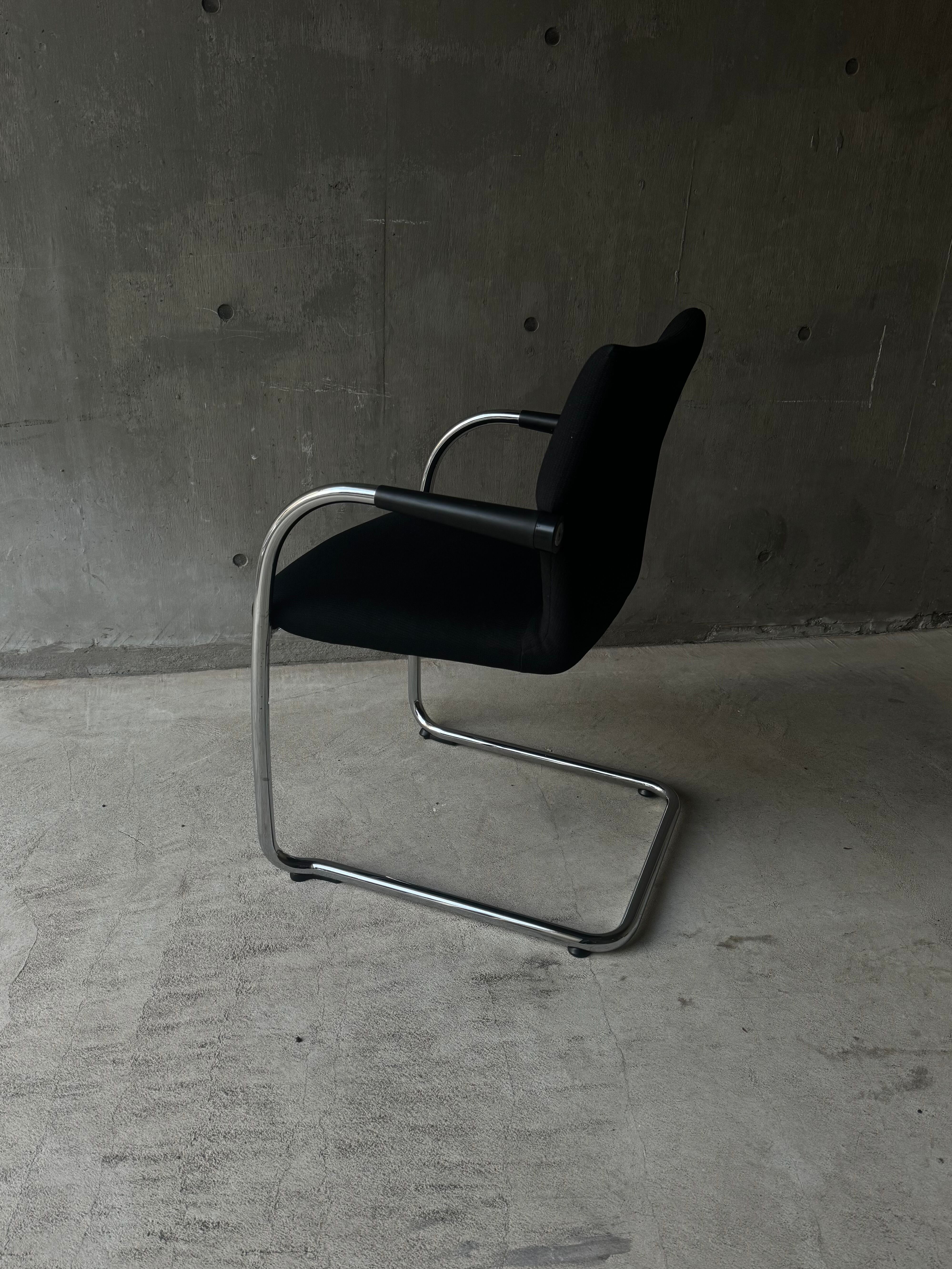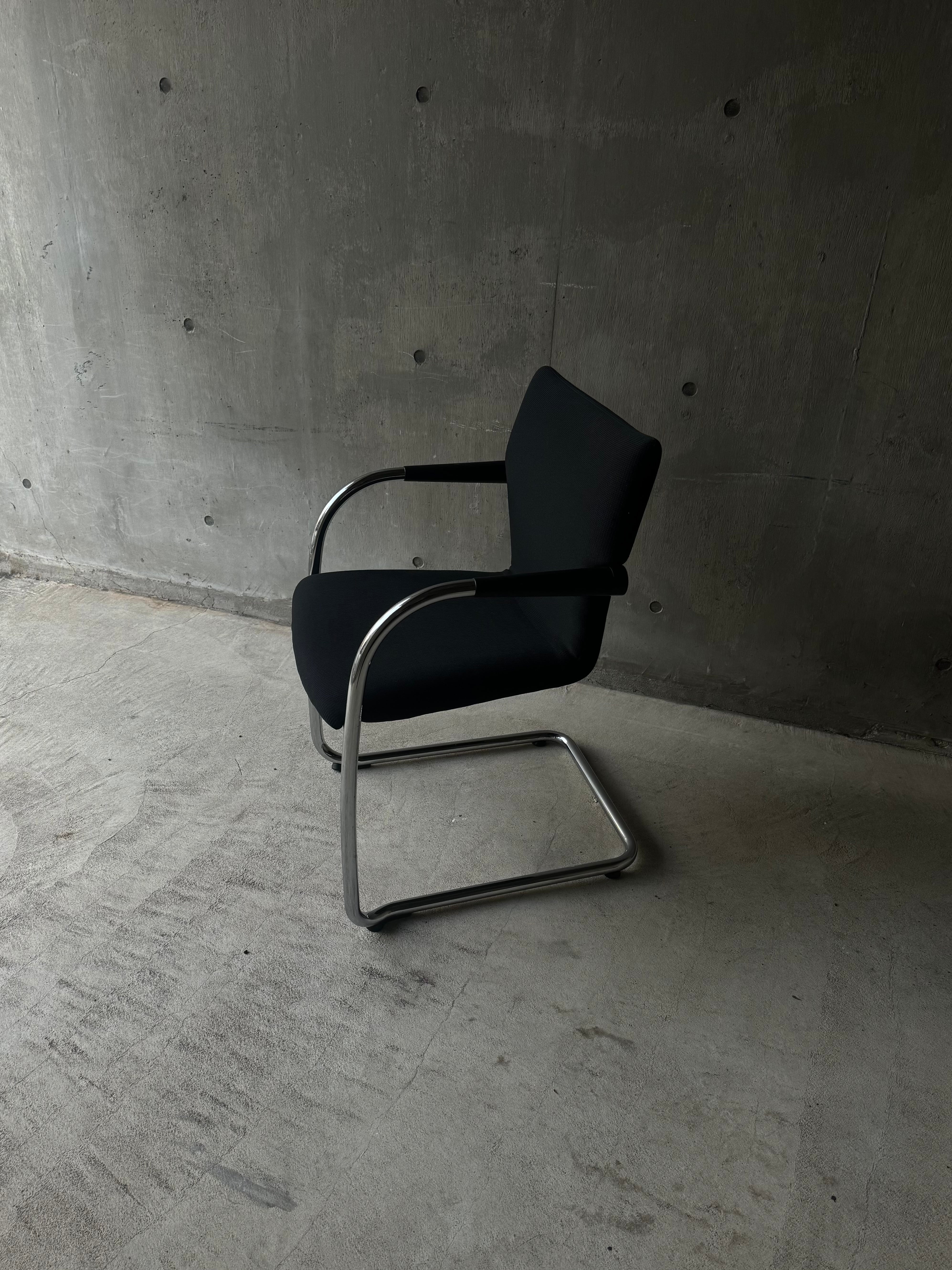 アントニオ・チッテリオよりデザインされたカンチレバーチェアです。建築の構造形式をもとにデザインされ、体重に合わせて沈み込んでくれます。シンプルなデザインに見えますが、アームレストなど細部までこだわっているアントニオ・チッテリオらしいデザインになっているかと思います。控えめですが、惹きつけられるアイテムです。座り心地も良く、常に人が使うことを前提として作っていることが分かります。シックに合わせて頂いても、お部屋を引き締めてくれるアイテムとして使ってもらっても良いかと思います。