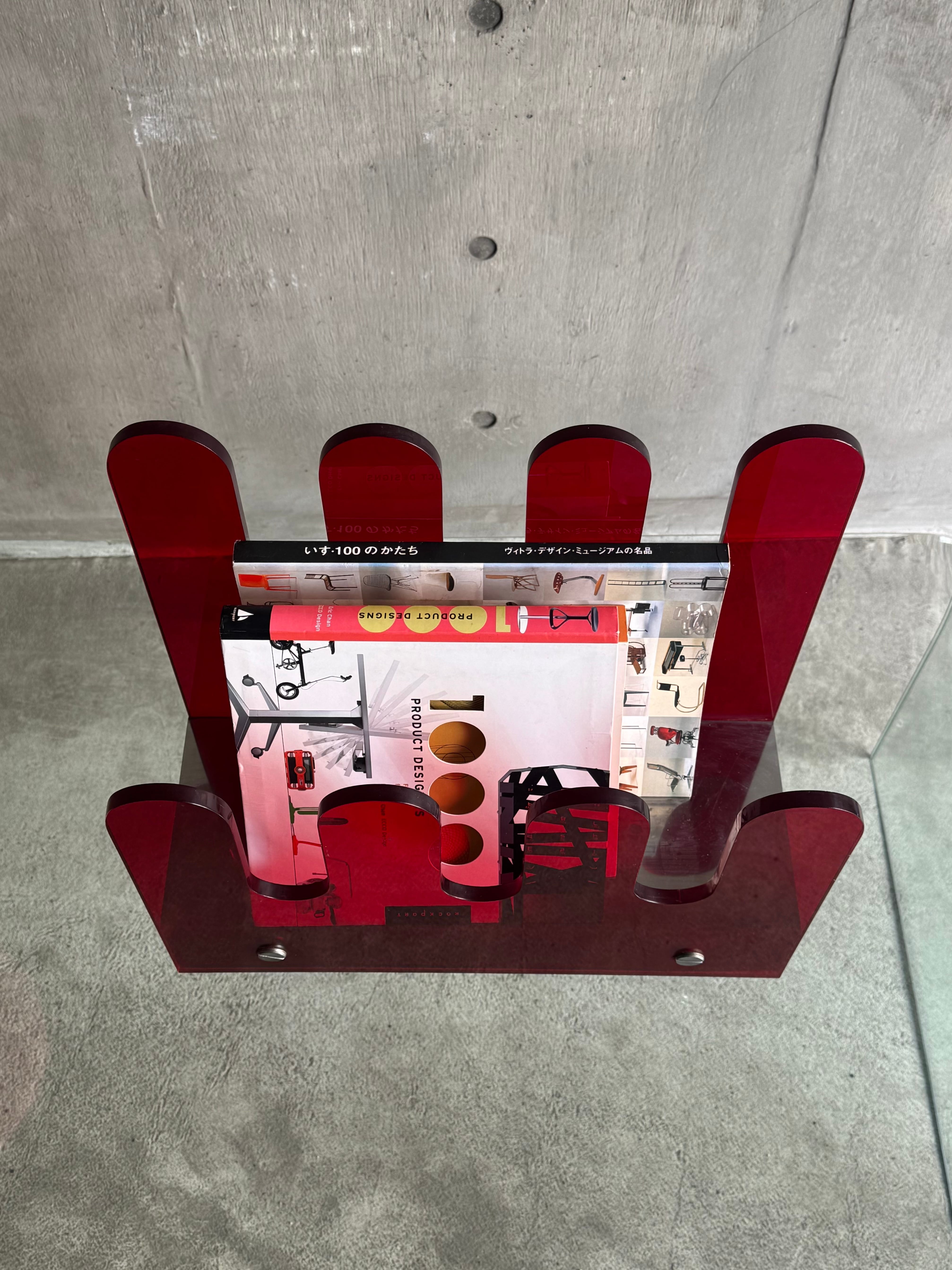 アクリルも厚さがあるためずっと使って頂けるアイテムかと思います。ブックスタンドとしていますが、レコード等他のものも収納頂けるかと思います。少し古いものになりますので今より贅沢にアクリルなどを使っているのかなと思いました。この辺りのアイテムは場所も取らないので人気なイメージです。お好きな方ぜひ。